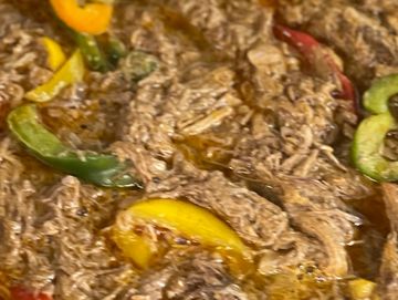 Slow-Roasted Shredded Beef, Onions, Bell Peppers, Garlic,