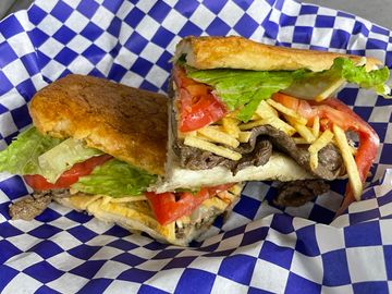 Sirloin Steak or Chicken, Multi Colored Pepper, Mushroom, Onions and Cheese