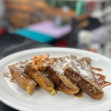 4 Thick Sweet Bread Toast Sprinkled with Cinnamon and Sugar Drizzled with Caramel